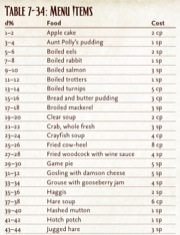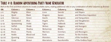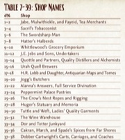 With the GameMastery Guide, we've sought to help with that. While it's an easy claim to say, "Paizo Publishing's GameMastery Guide makes being a GM a breeze!" that over simplifies the matter. Being a GM can be a challenge, but that's part of what makes being a GM interesting, and what makes running a fun and memorable game a real achievement. Rather than trying to take all the work of being a GM out of your hands, the GameMastery Guide strives to help with that work, providing you with tools to inspire your storytelling, to provide PCs with details you didn't prepare, and to help you adlib when your party zigs when you expected them to zag. Such tools become most evident in the more than 100 charts and tables organized throughout this tome, providing you with facts, details, and inspirational springboards to keep your game fresh. Check out the sampling of clipped charts below for a peek at what I'm talking about. Hope you've got your percentile dice handy!