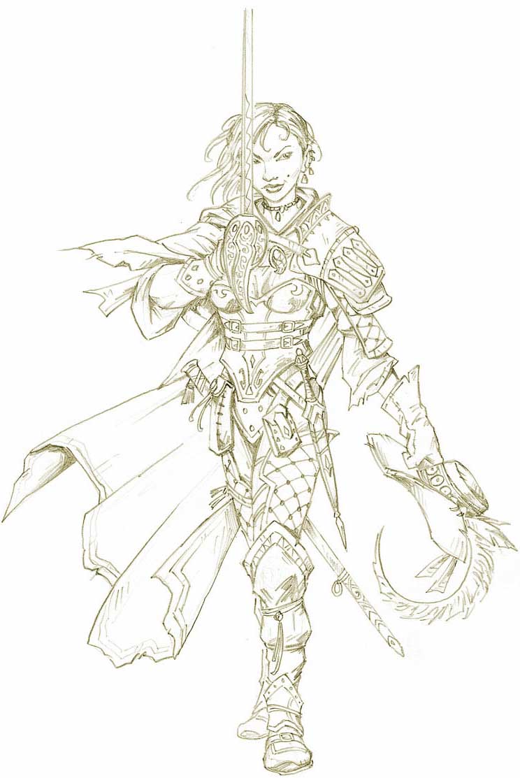 There were a fair number of rules that had to be cut from the Beta Playtest Edition of the Pathfinder Roleplaying Game. Prestige classes were one of the unfortunate casualties. Fortunately, along with the magic of the Internet, we can release these rules to you for playtesting and review. This document will be available on Monday, October 27th from paizo.com, but in anticipation, we thought we might give you a sneak peak at one of the classes in the document. Take a look at some of these new powers for the duelist prestige class.